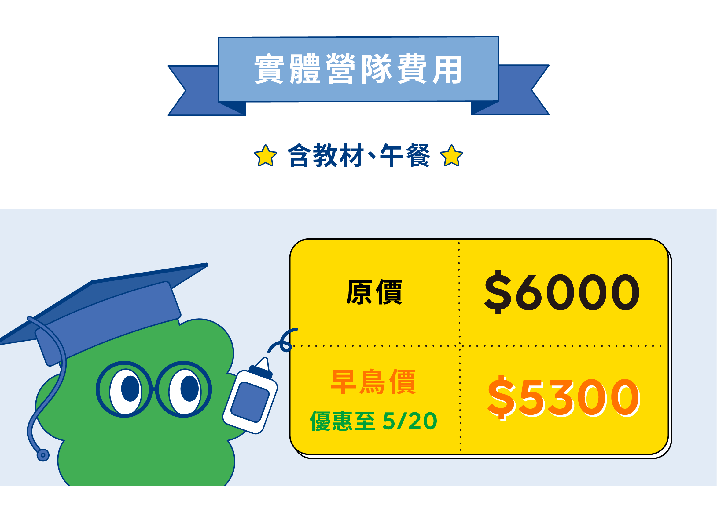 ➤ 若學員無法全程參加營隊,可請事假,主辦單位將提供當日課程教材。因報名完成後即為學員保留整梯次的營隊名額及課程教材,恕無法退還單日學費。