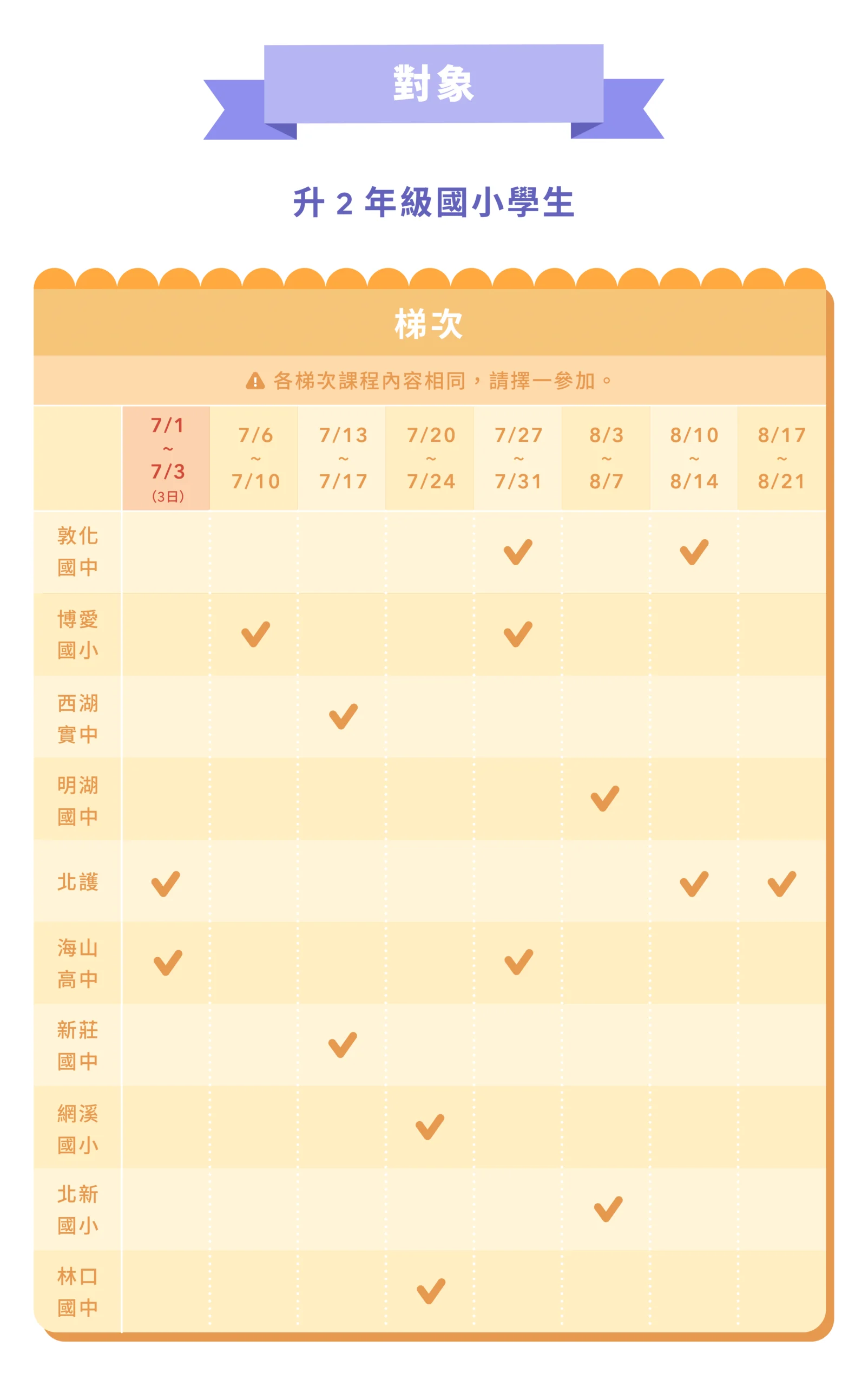 ➤ 營隊招收升2年級國小學生。考量學員學習品質、課程內容及同儕互動,恕無法接受升1年級國小學生報名。