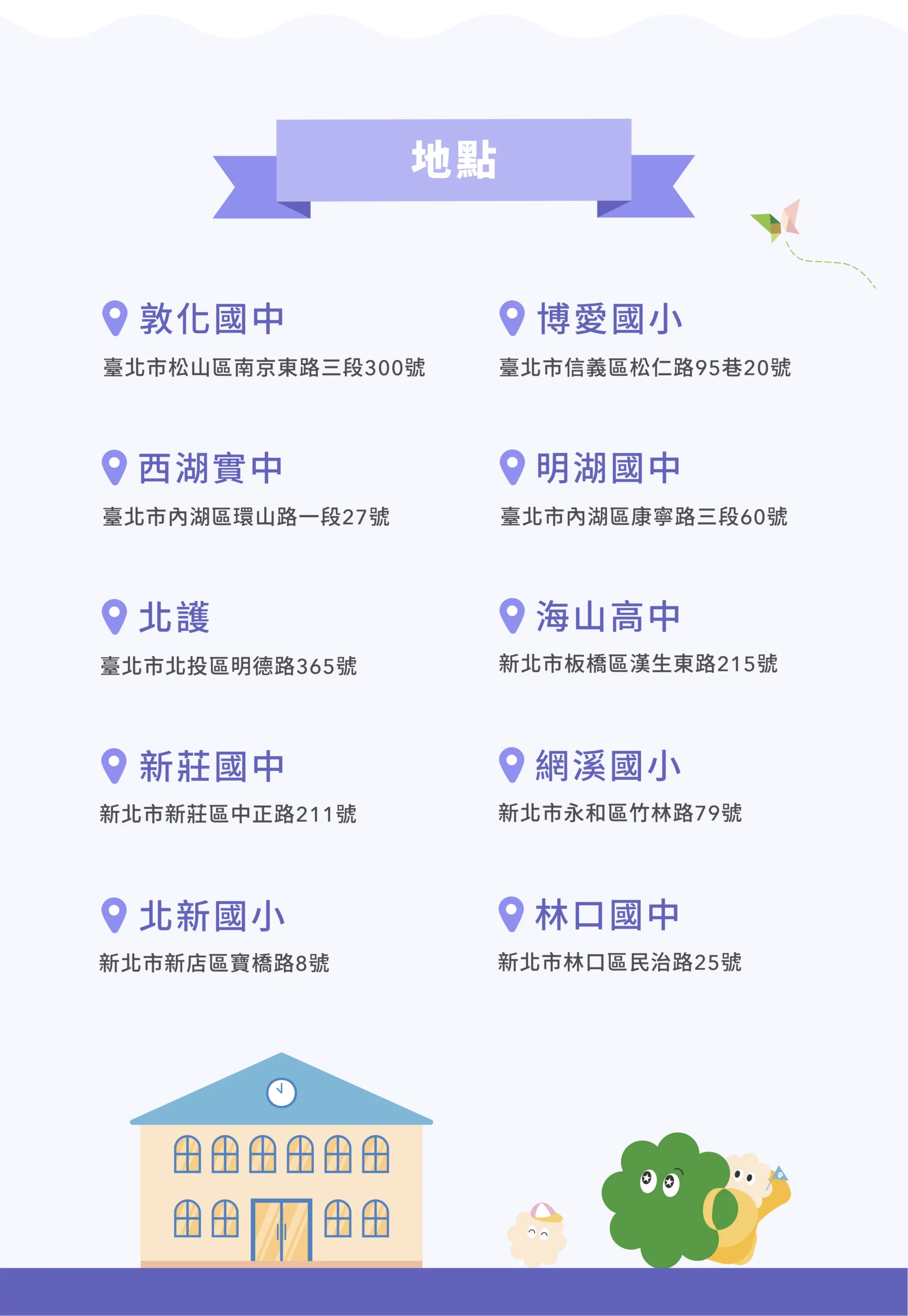 ➤ 臺北市(美數學院)、新竹縣(十興國小)