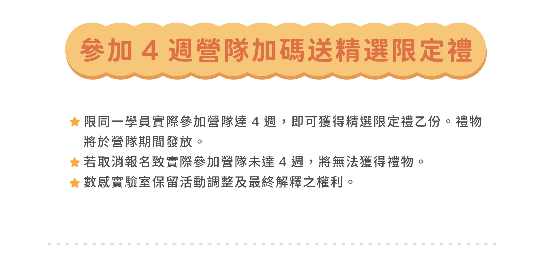 ➤ 營隊期間,若因不可抗力因素致使營隊停課,主辦單位將擇一採取以下替代方案: