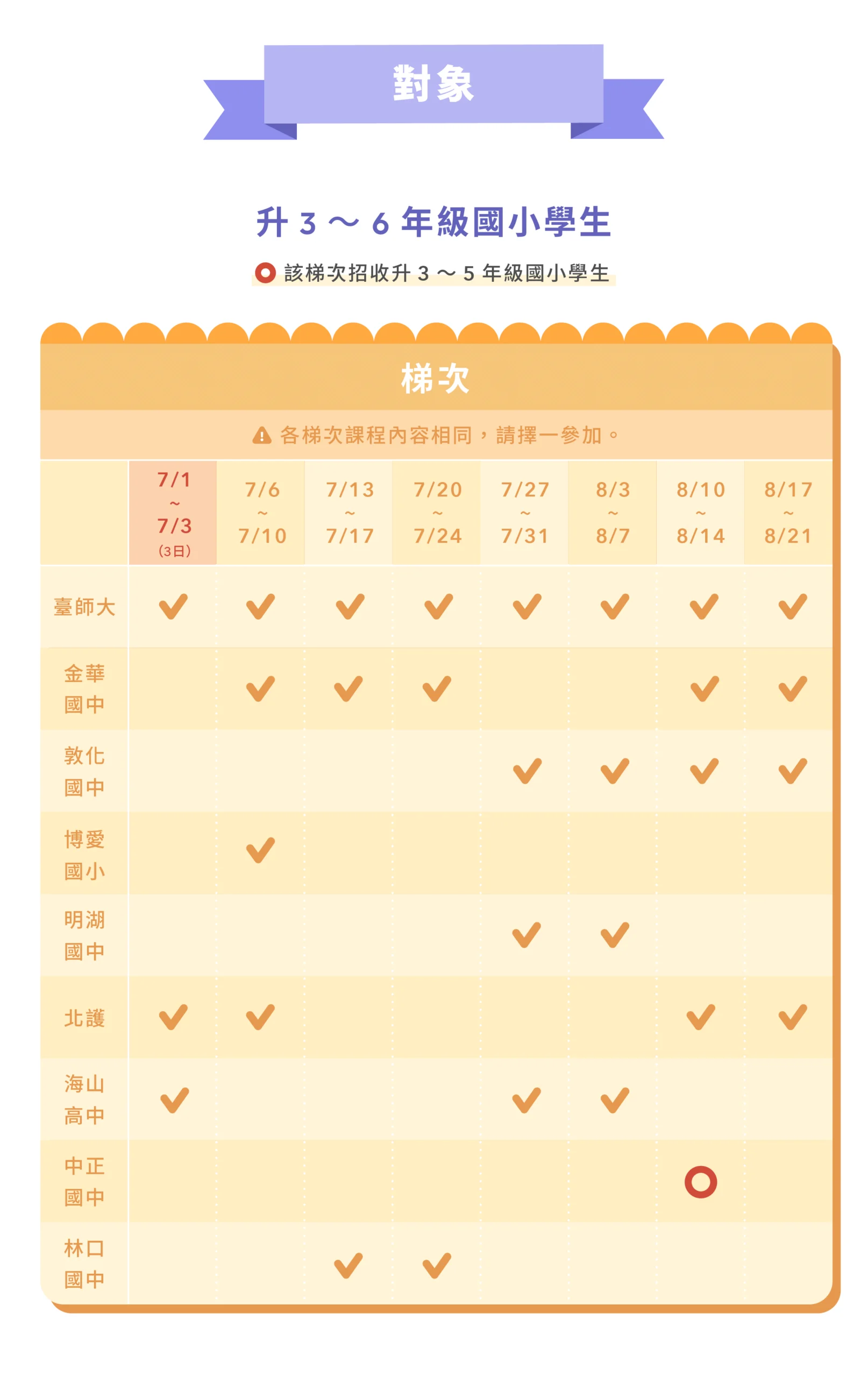 ➤ 營隊招收升3~6年級國小學生。考量學員學習品質、課程內容及同儕互動,恕無法接受升1~2年級國小學生報名。