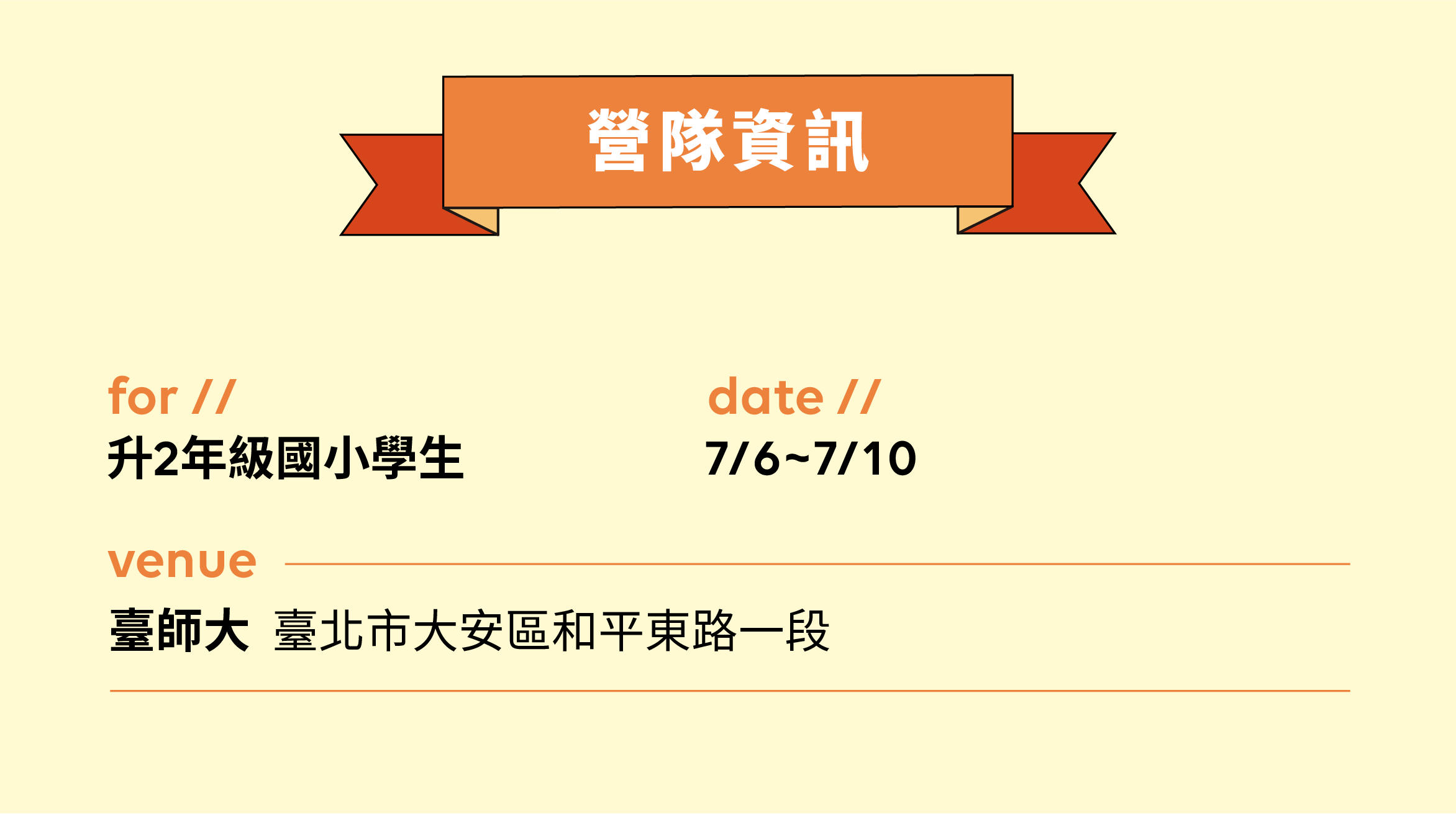 ➤ 營隊招收升2年級國小學生。考量學員學習品質、課程內容及同儕互動,恕無法接受升1年級國小學生報名。