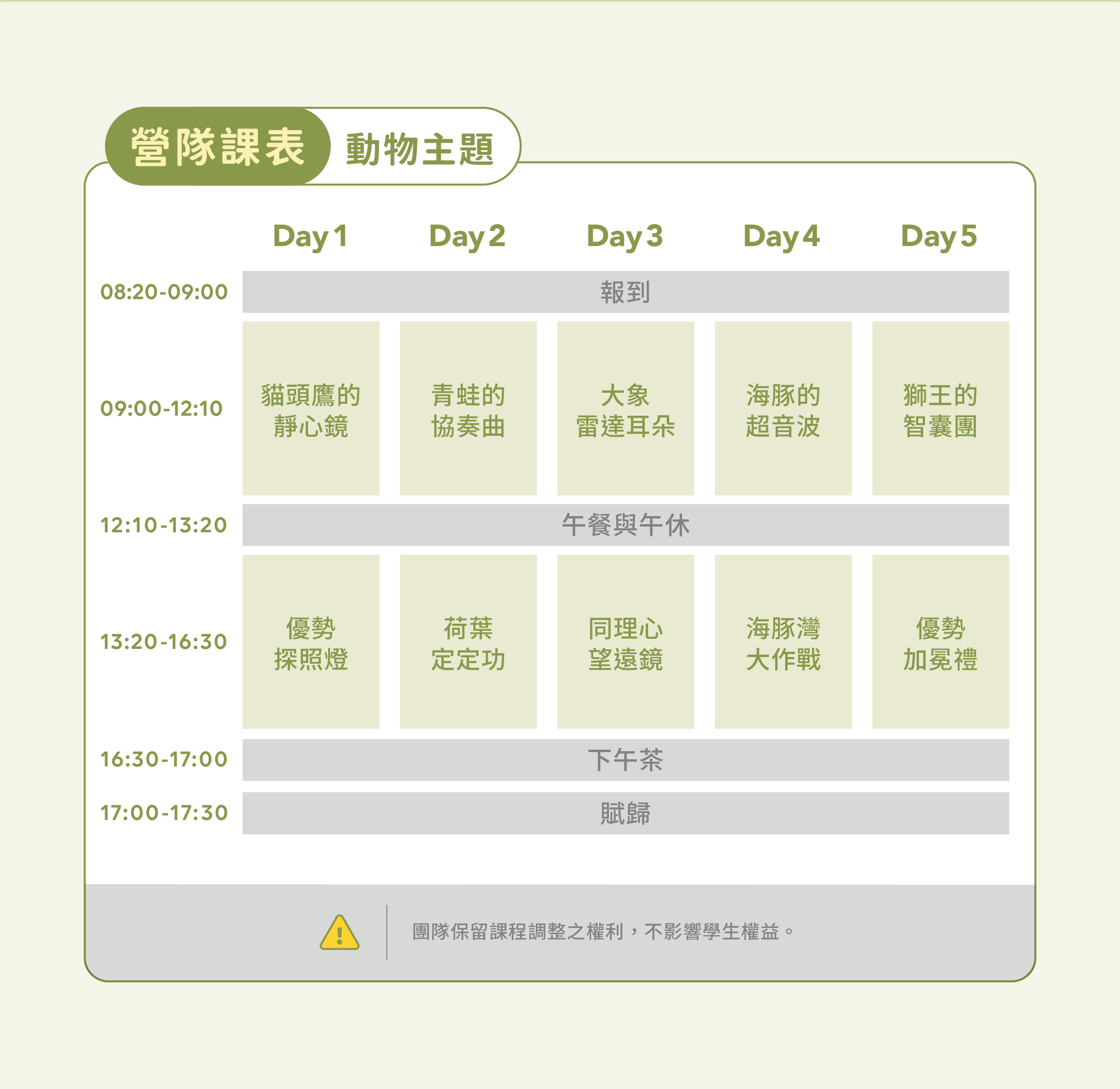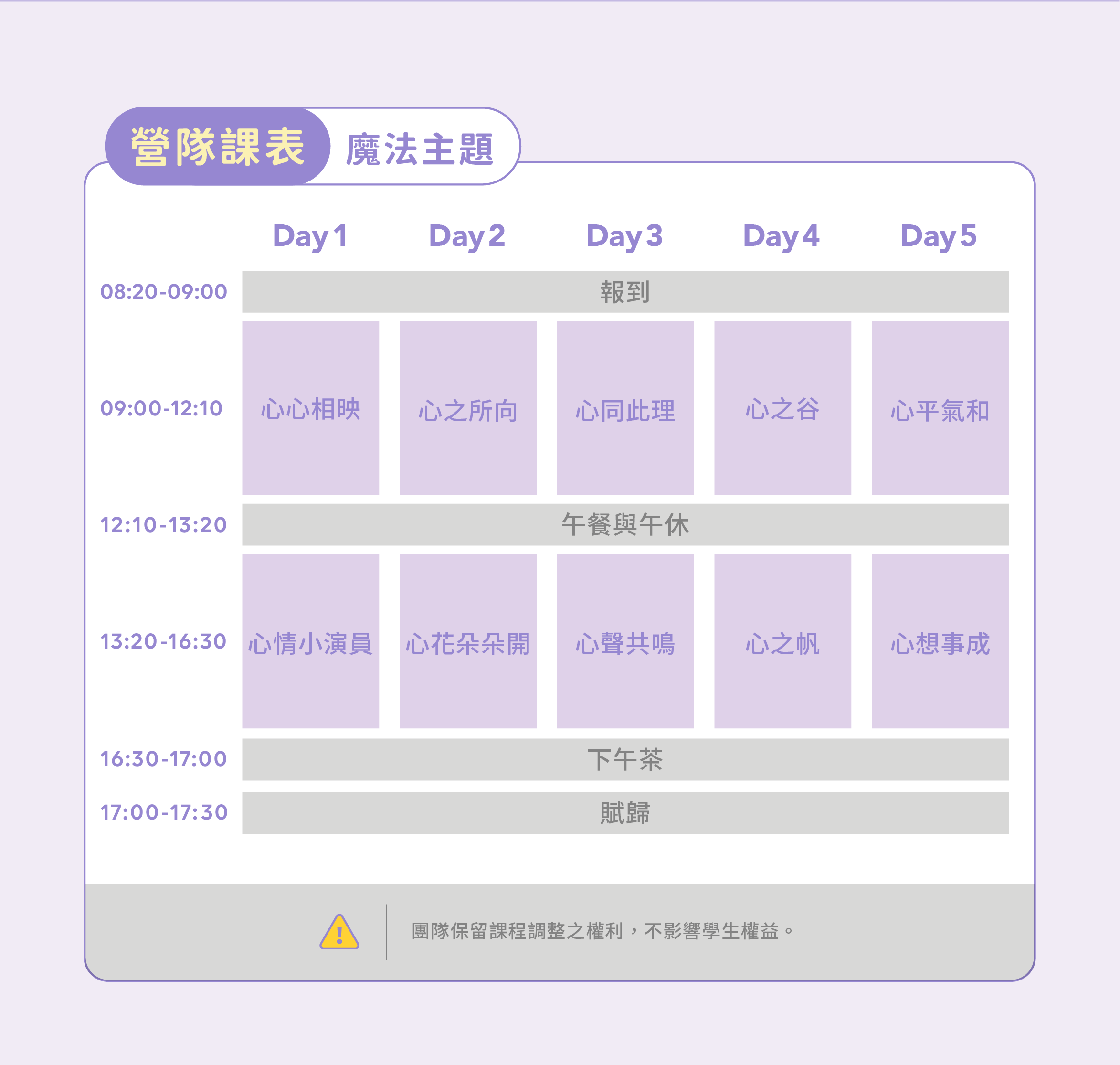 ➤ 主辦單位將於營隊開始前2週通知學員分配班級,為維護全體學員權益,公告後恕無法異動。