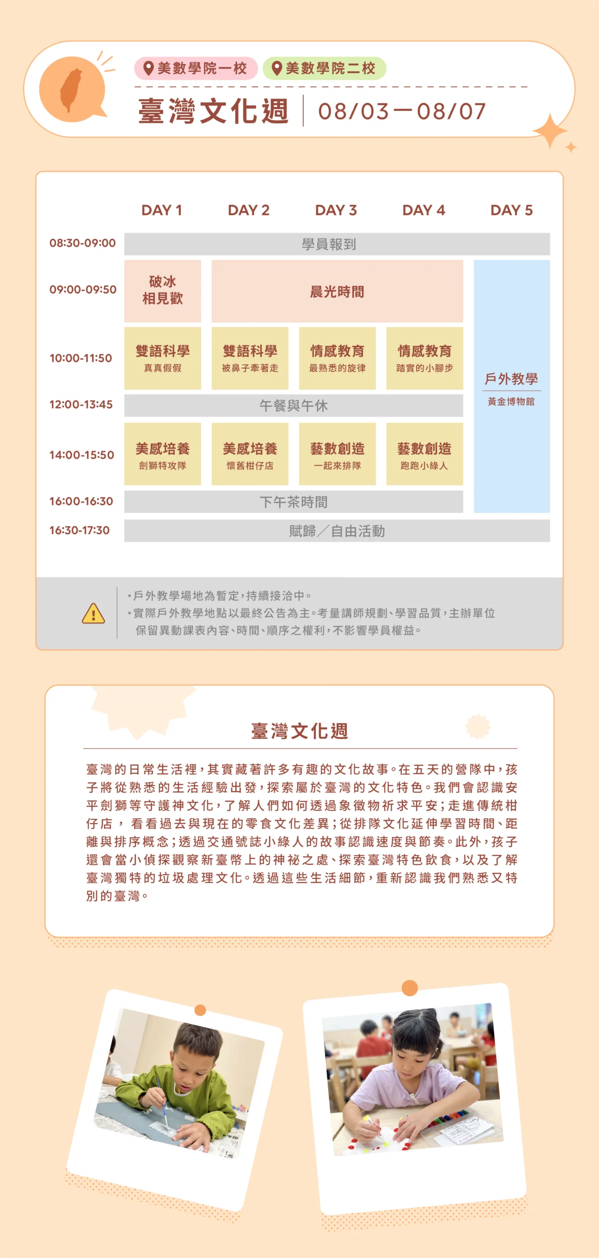 🔺暑期戶外教學場地目前仍由場地方進行後續確認流程,現階段所列場地為暫定,實際教學地點將以最終公告為主。