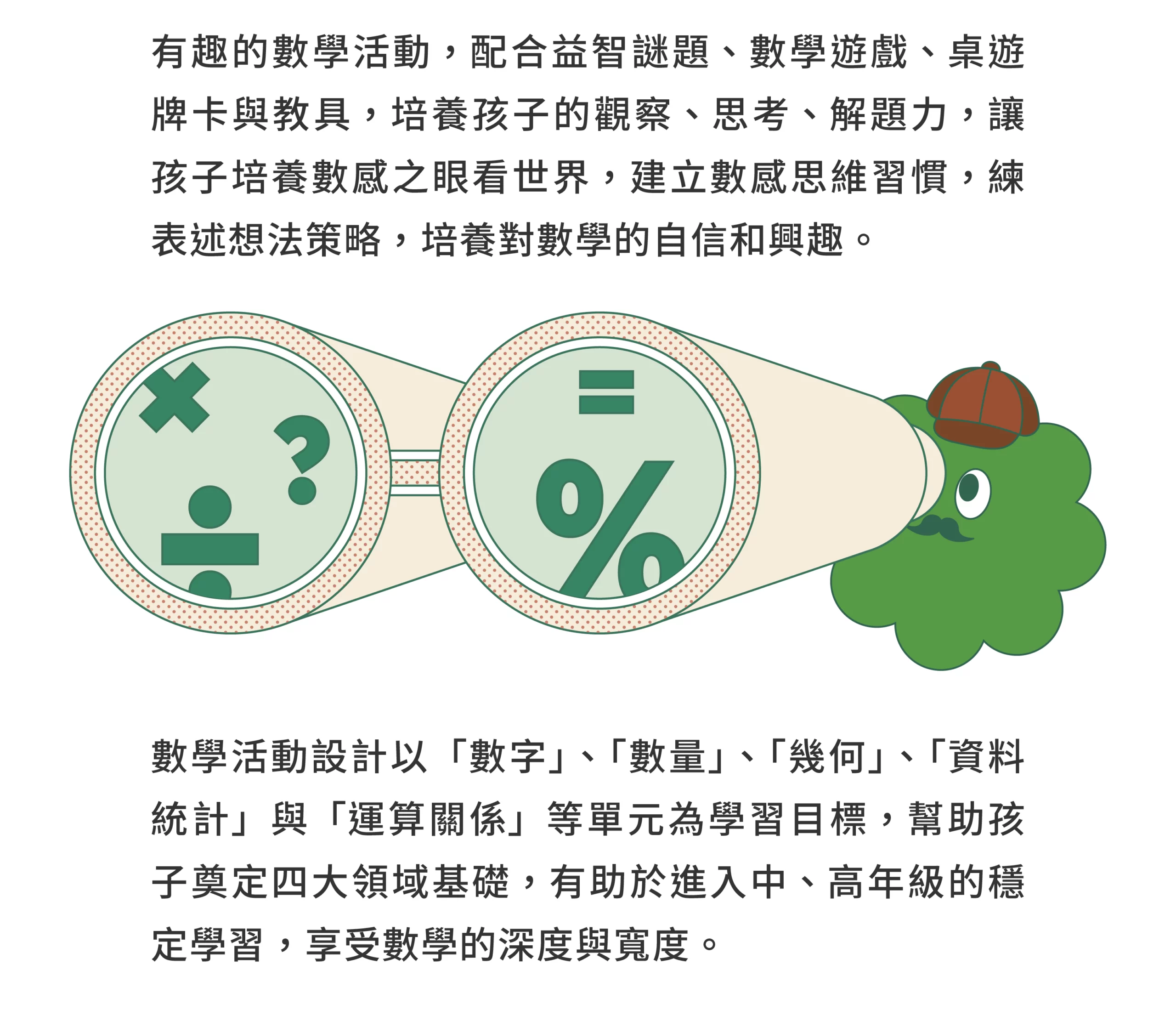 ➋ 團報折扣碼僅適用於官網上數感實驗室舉辦之2026春季班(數感啟蒙課、數感思考課、數學實驗課、數感理財桌遊課)。