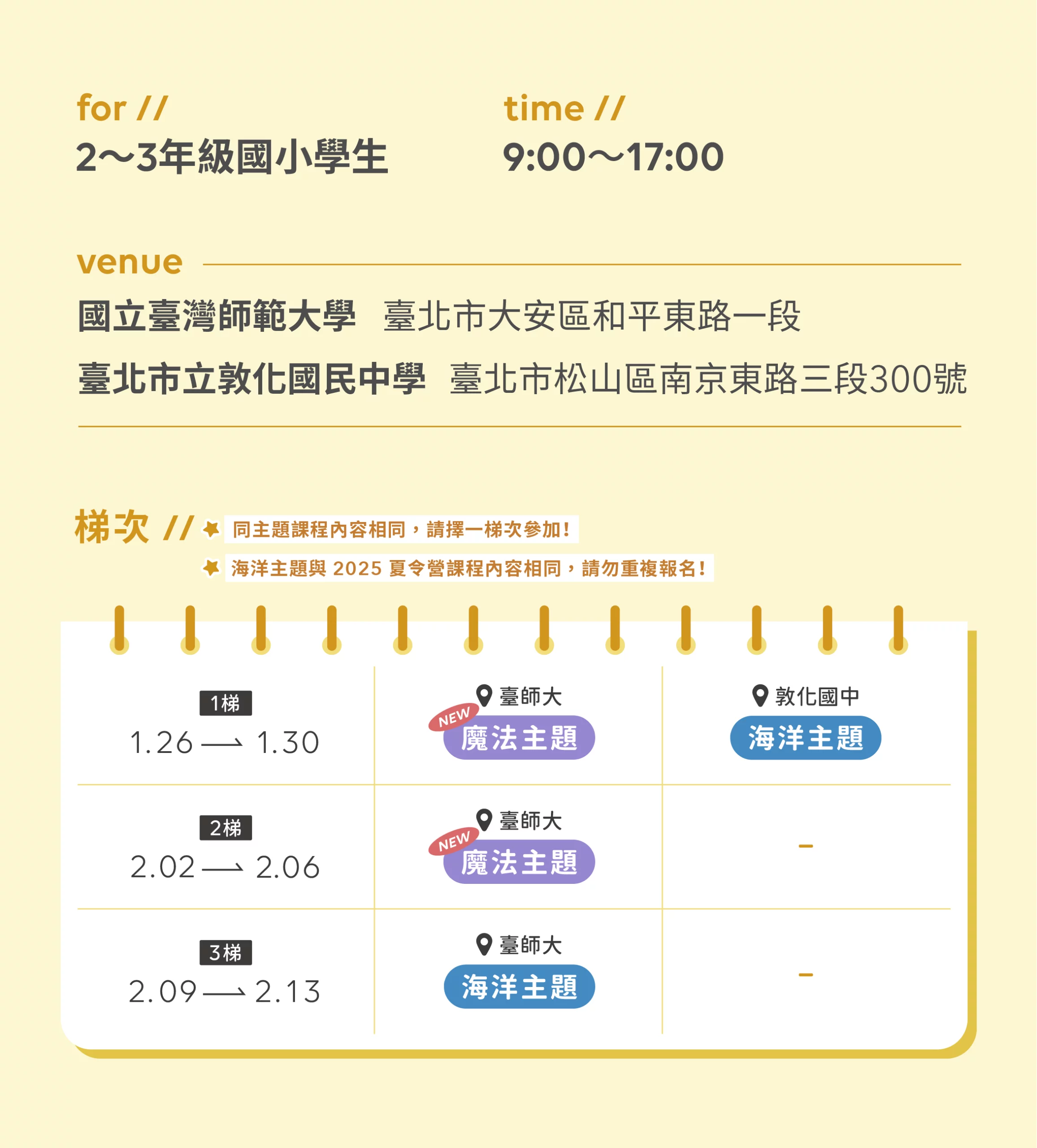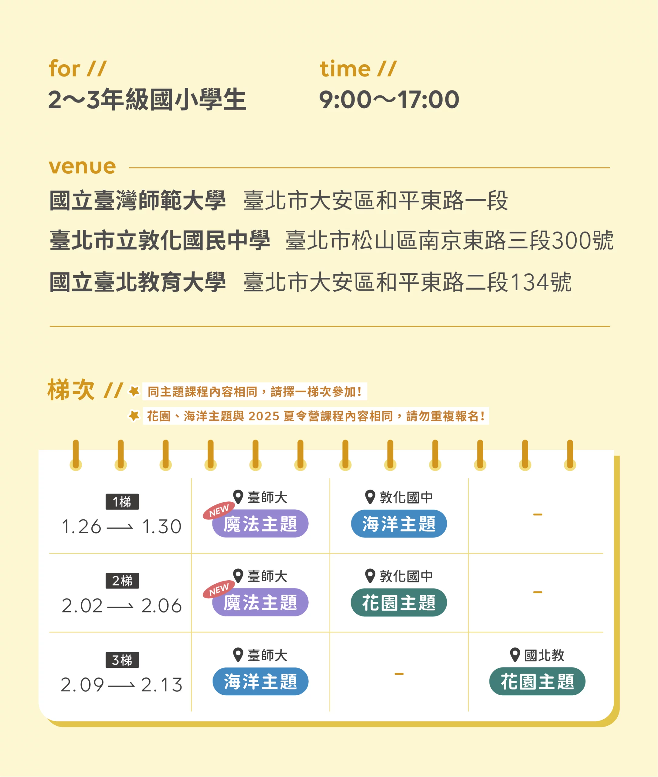➤ 臺師大SEED中心聯名營(實體):適合2~6年級