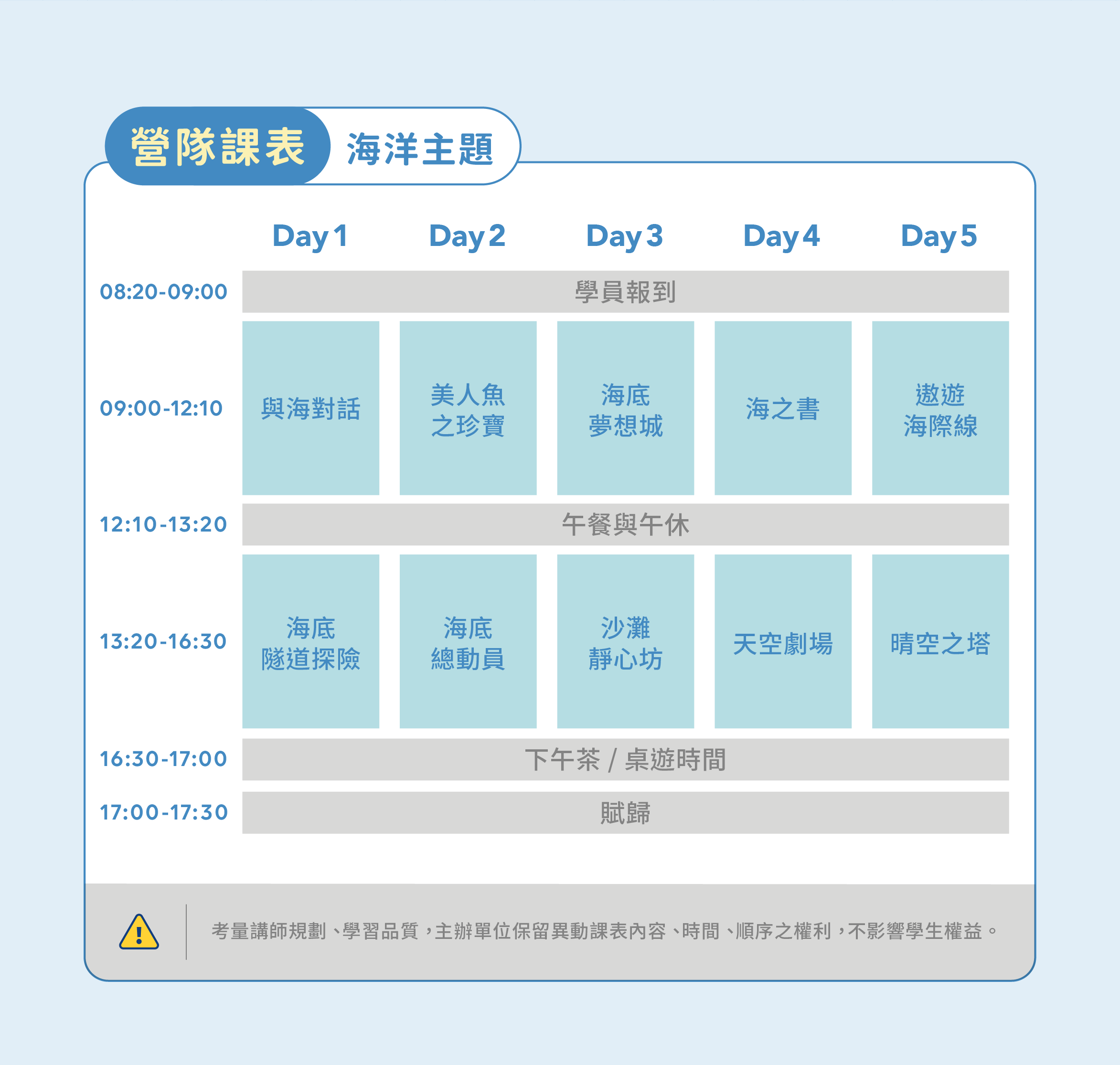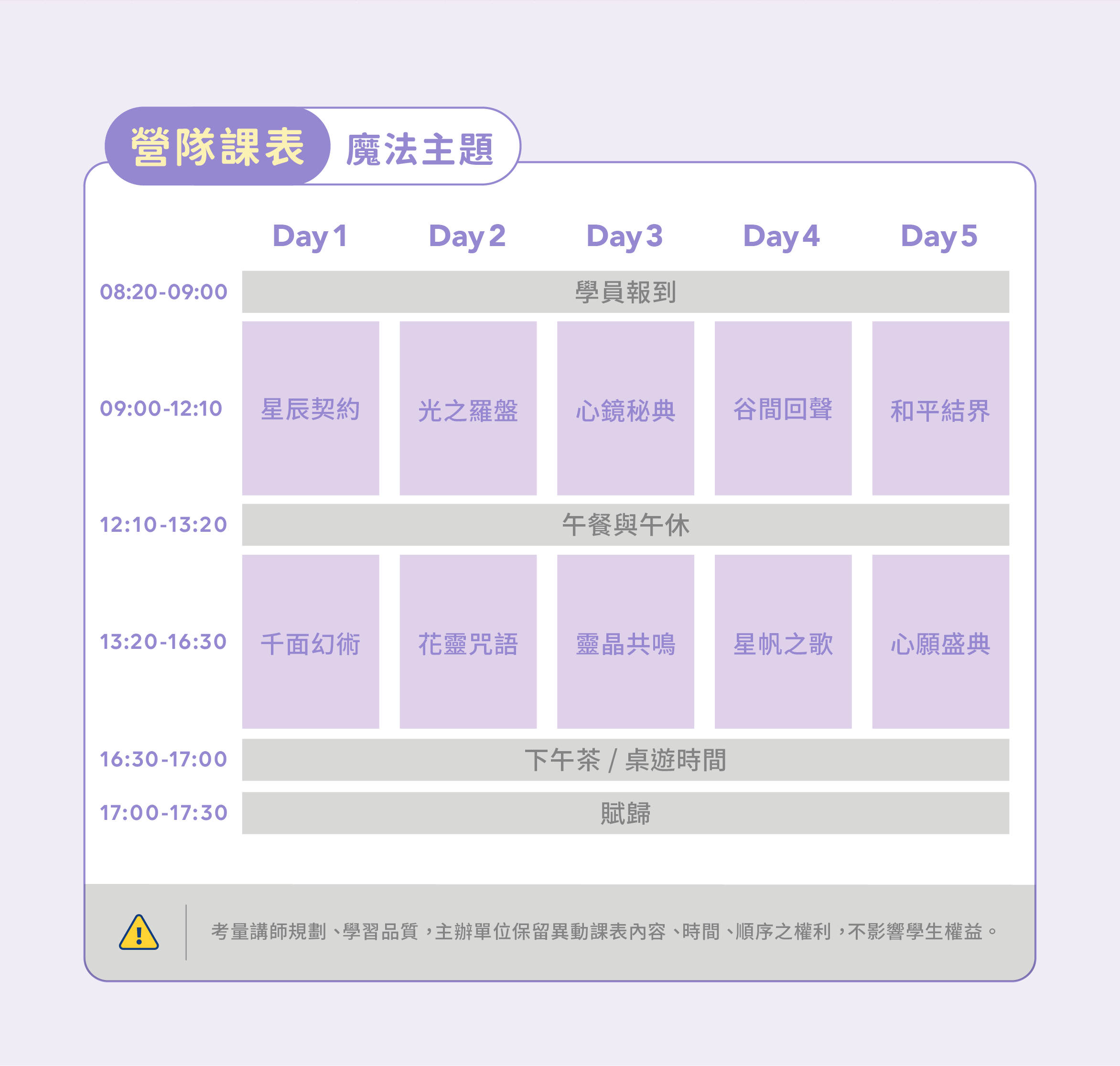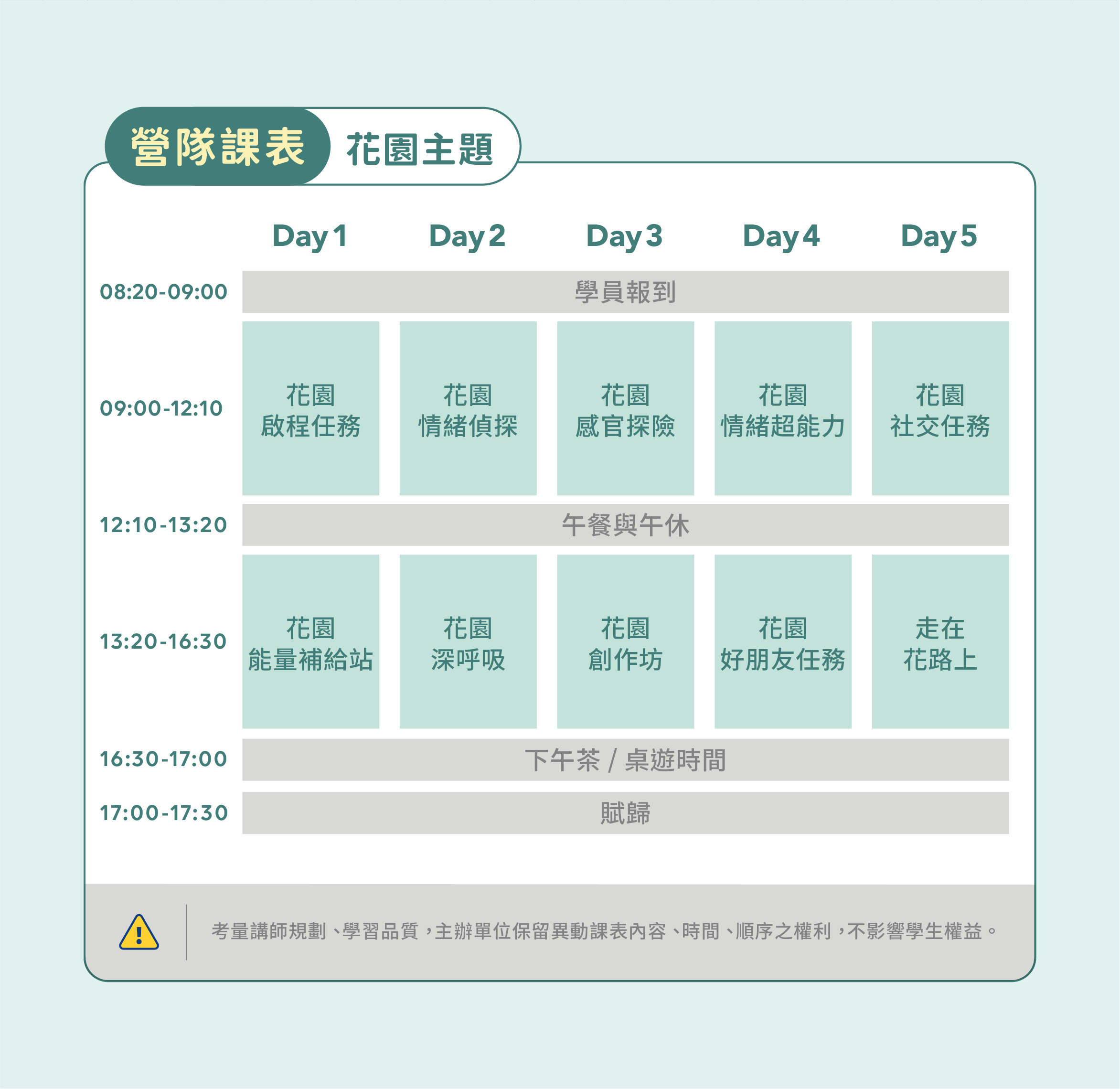 ➋ 為方便家長接送,上學、放學時間皆由老師於校門口接送學員,確切接送地點將於營隊行前通知信公告。