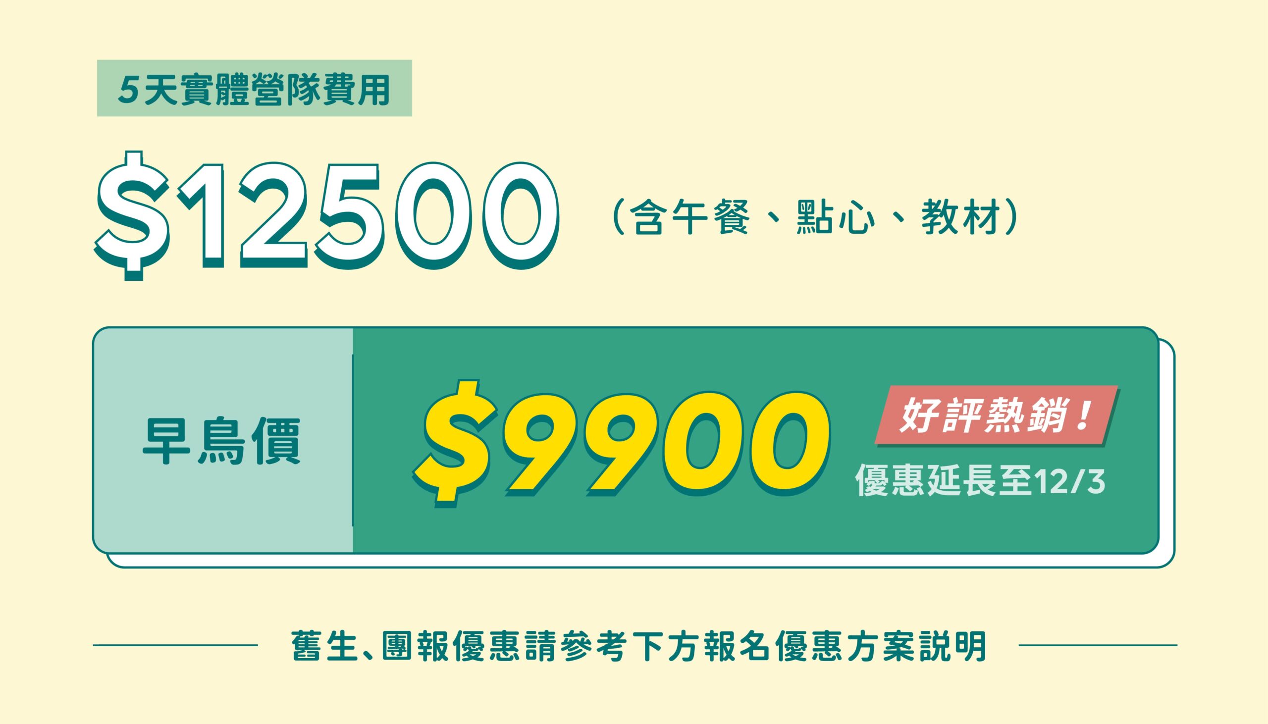 ➌ 為提供學員完整、優質的學習體驗,恕無法接受半日、單日等形式的報名。